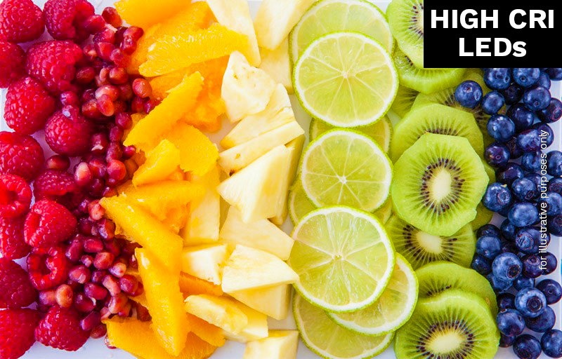 Even with a high CRI (Ra), color rendering of saturated colors can be poor. LEDs that deliver 90+ CRI and high R9 values provide accurate and consistent color.